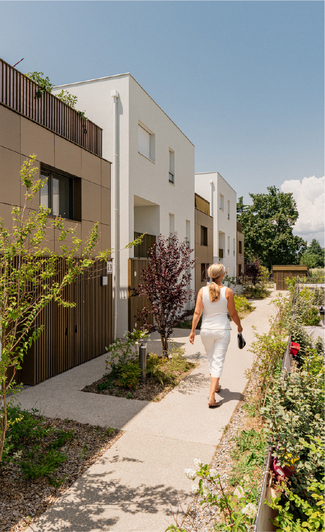 La diversité des paysages n’a d’égale que celle des bâtiments, pensés comme des îlots ayant chacun leur propre personnalité. Ici, ce sont des logements semi-collectifs, avec leurs grands extérieurs et un accès privatif. Là, des bâtiments aux volumes raisonnés dévoilant des volumes généreux, prolongés sur l’extérieur par de belles terrasses.