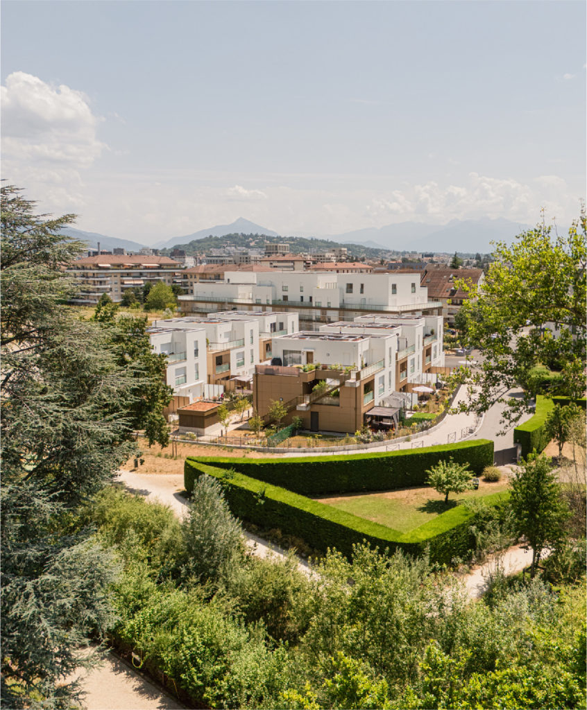 La diversité des paysages n’a d’égale que celle des bâtiments, pensés comme des îlots ayant chacun leur propre personnalité. Ici, ce sont des logements semi-collectifs, avec leurs grands extérieurs et un accès privatif. Là, des bâtiments aux volumes raisonnés dévoilant des volumes généreux, prolongés sur l’extérieur par de belles terrasses.